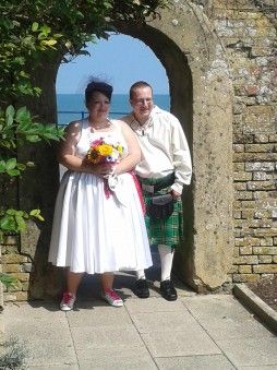 I told her I loved her that night. She told me same. Within three months, on a balmy warm evening at Beachy Head down in Eastbourne, and to my own surprise as well as hers, I was on one knee asking her to marry me! Thankfully she said yes and and we got married on Saturday 13th July, 2013 in Eastbourne. She looked stunning that day. Mind you, I’m not sure if it was the way I was dressed (in my kilt and Braveheart outfit), but she just couldn’t stop laughing as she was saying her vows!